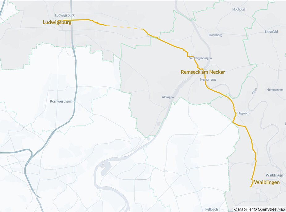 Der RS 8 verbindet die Städte Ludwigsburg, Remseck am Neckar und Waiblingen.